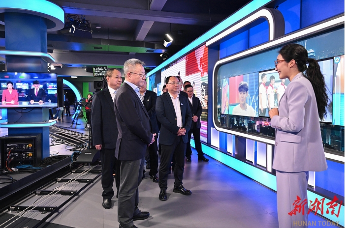 沈曉明來到長沙學院、湖南大眾傳媒職業(yè)技術學院、湖南藝術職業(yè)學院,實地察看了全媒體中心實驗室、XR演播區(qū)、湖南廣播電視臺節(jié)目生產(chǎn)基地、全媒體實訓室等,詳細了解學院發(fā)展、專業(yè)布局、校企合作、以新技術助推人才培養(yǎng)與文化產(chǎn)業(yè)深度融合等情況,指出要深化產(chǎn)教融合,推動校企合作向資源集約型發(fā)展,鼓勵更多行業(yè)專業(yè)技術人才進校授課,打造特色鮮明的應用型高校。